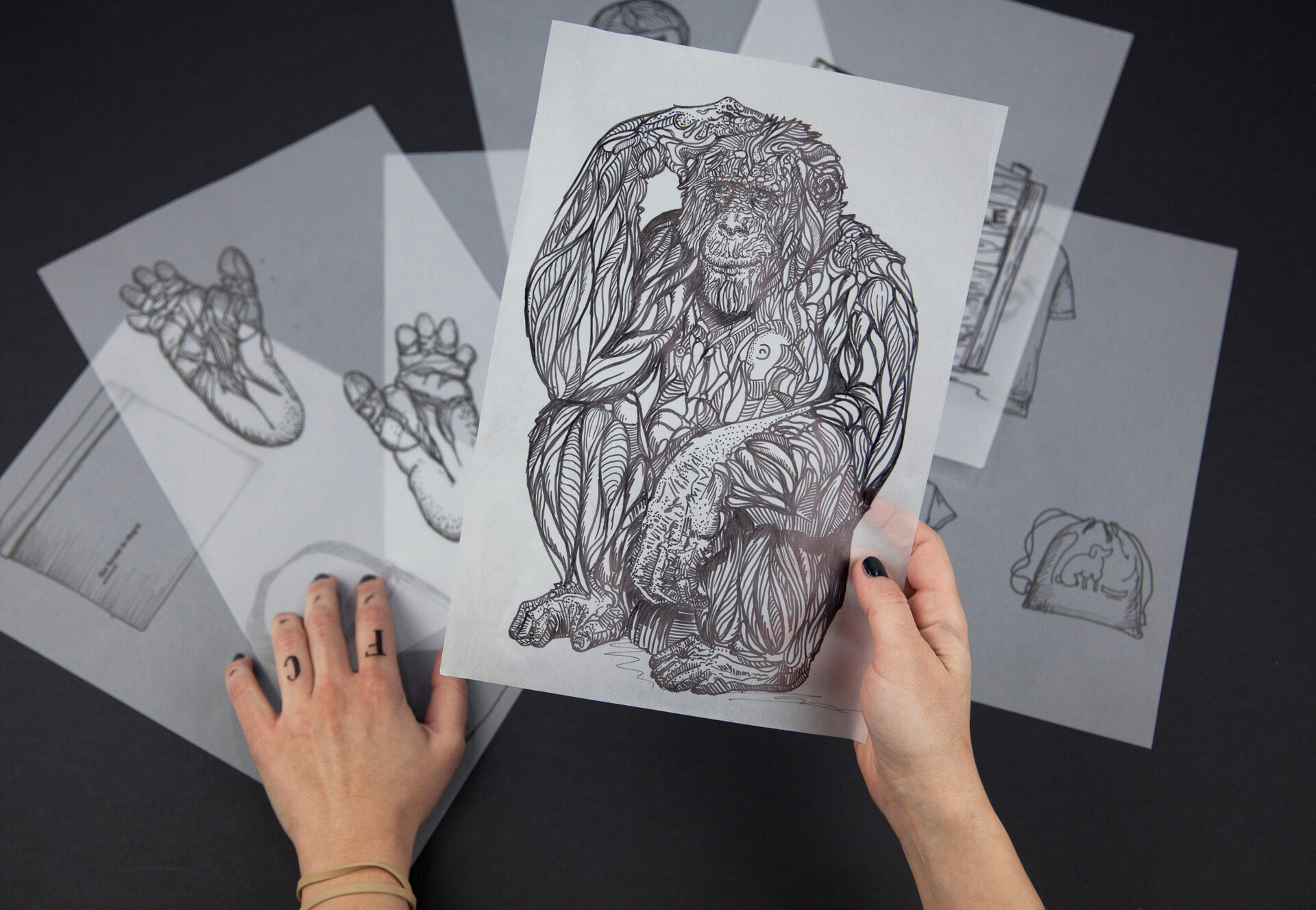Projekt identyfikacji wizualnej dla tej edycji festiwalu tworzyliśmy zainspirowani doświadczeniem Gordona G. Gallupa. Ten amerykański psycholog w 1970 roku opublikował w czasopiśmie "Science" wyniki swoich badań, które przeprowadził na grupie szympansów. W dużym skrócie szympansy, którym bezzapachową farbą namalowano plamy nad brwią zostały poddane obserwacji. Zachowanie człekokształtnych w obliczu swoich odbić w lustrze pokazało, że są one ŚWIADOME własnego odbicia.