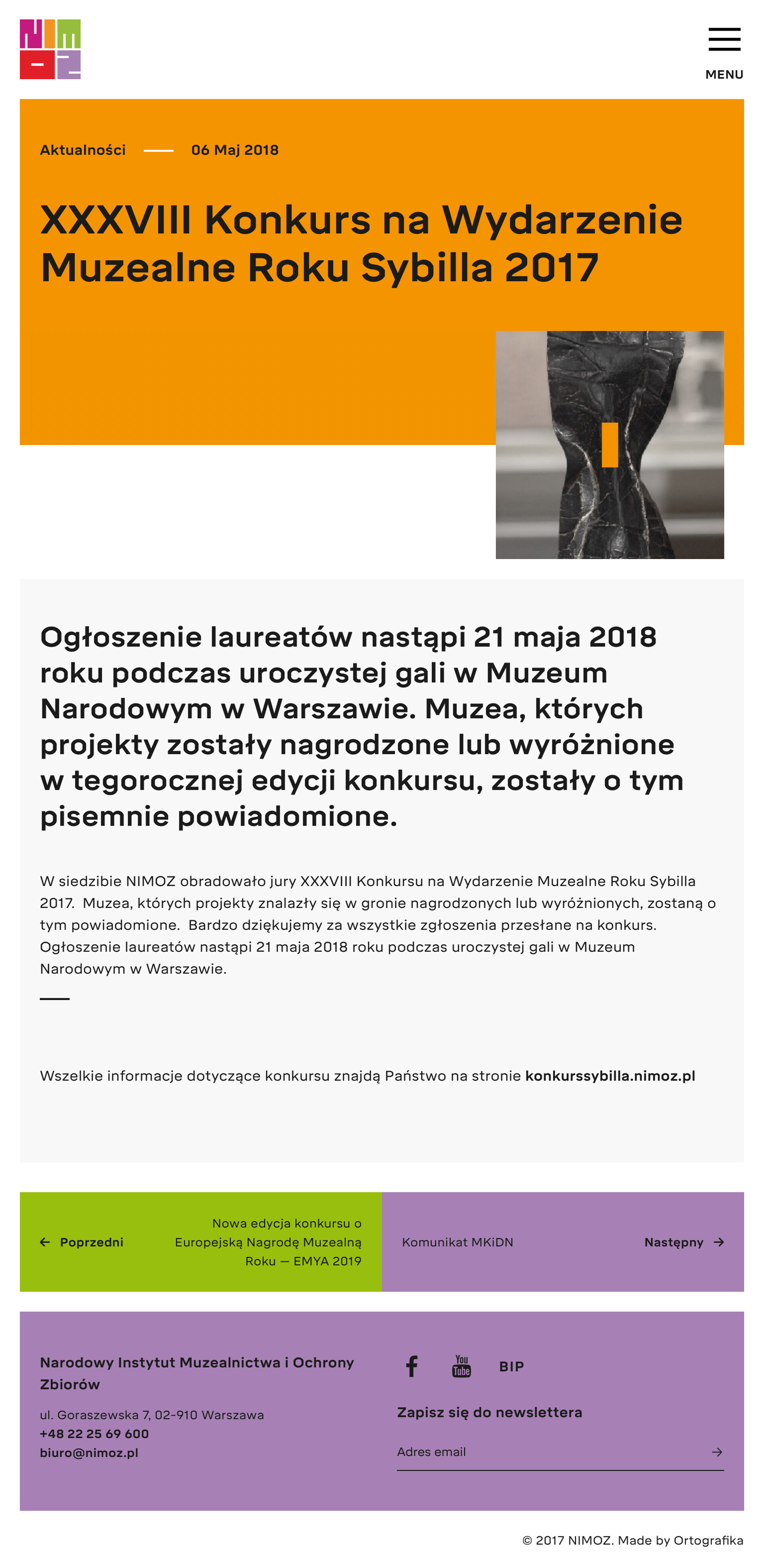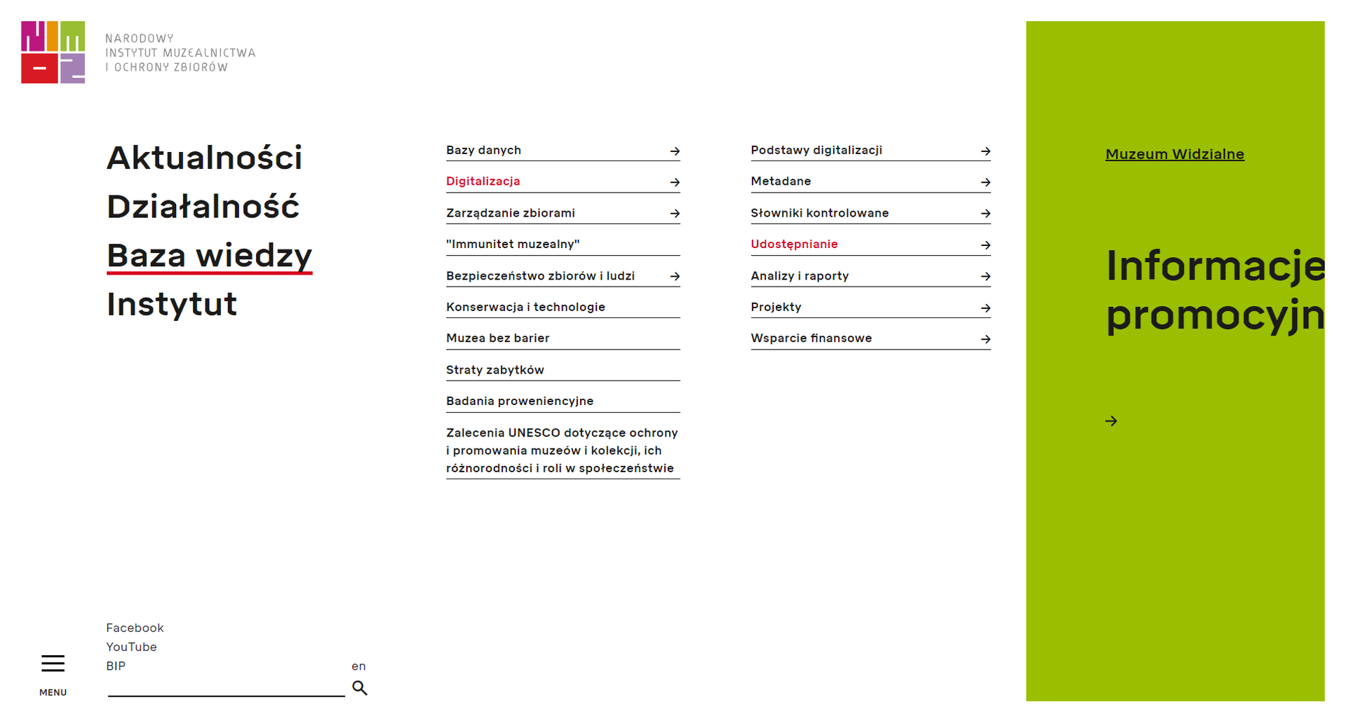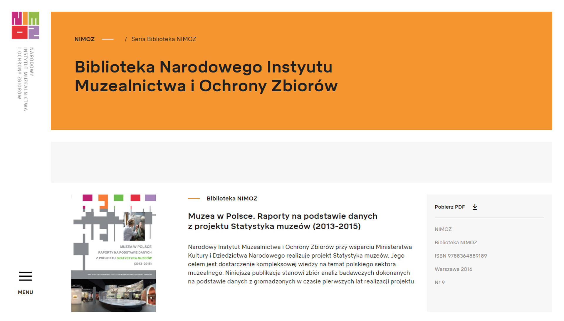 Serwis NIMOZ to najważniejsze źródło wiedzy eksperckiej dla muzealników w Polsce. Strona internetowa NIMOZ zawiera setki artykułów i publikacji, oferuje szkolenia, zawiera bazy danych obejmujące akty prawne, straty wojenne czy wreszcie udostępnia przepastne poradniki o zarządzaniu zbiorami i digitalizacji. Samo uzupełnienie strony trwało ponad trzy miesiące.